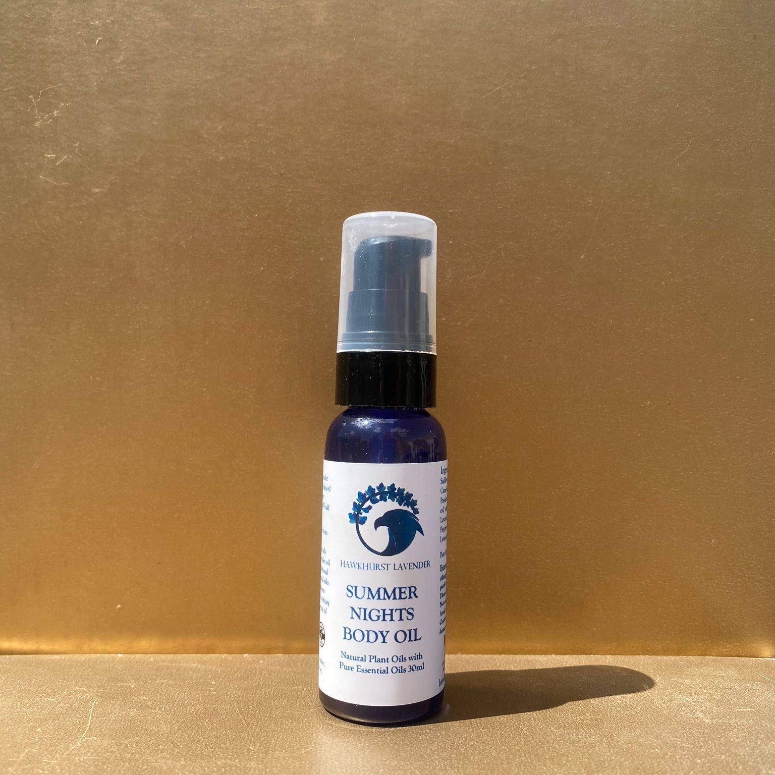 Summer Nights Body Oil has a citrusy scent, Hand blended from natural easily absorbed plant oils with our own farm grown pure steam distilled lavender essential oil and other traditional summer essential oils. All the oils in this product are natural and being produced from plants it is vegan friendly, not tested on animals and are chemical free.