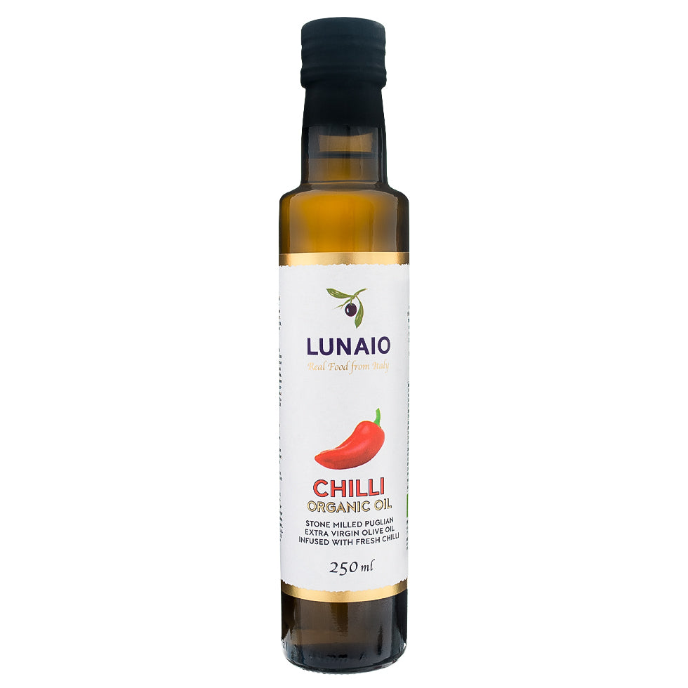 A spicy hot olive oil with a warming chilli flavour from southern Italy. Fresh, organically grown local Puglia chillies are immersed in organic cold pressed extra virgin olive oil to infuse the aroma and flavour of the chillies. This bright and fragrant chilli oil will bring a flavourful kick to pastas, sauces, stir fries or any dish that wants little bit of heat.